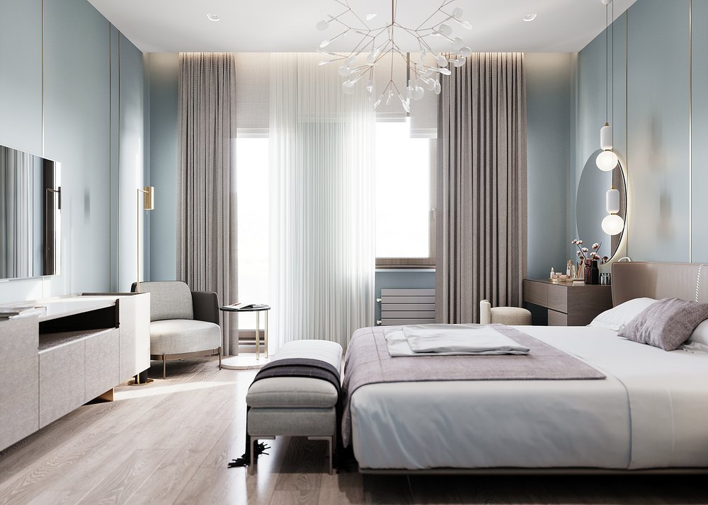 Интерьер спальни из проекта квартиры в ЖК "Дом на Грота"