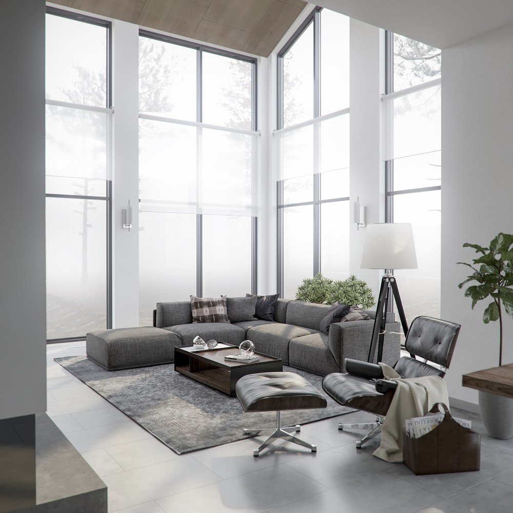 Интерьер коттеджа выполнен в стиле минимализма. Визуальная легкость, обилие света, лаконизм четких линий внушают чувство гармонии и покоя, разительно контрастируя с хаосом и суетой городской жизни. Грамотное планирование пространства создает ощущение широты, простора, ничем не ограниченной свободы.