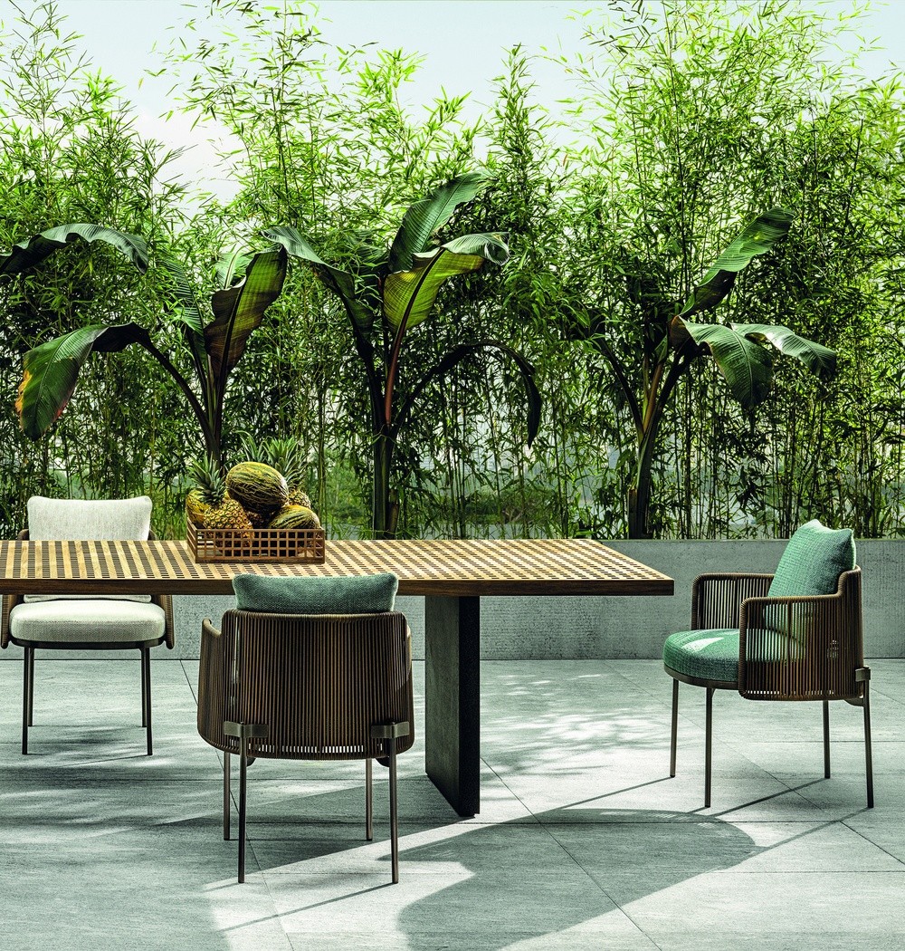 Обеденный стол и стулья из коллекции мебели для сада Quadrado - еще одна новинка от Minotti.
