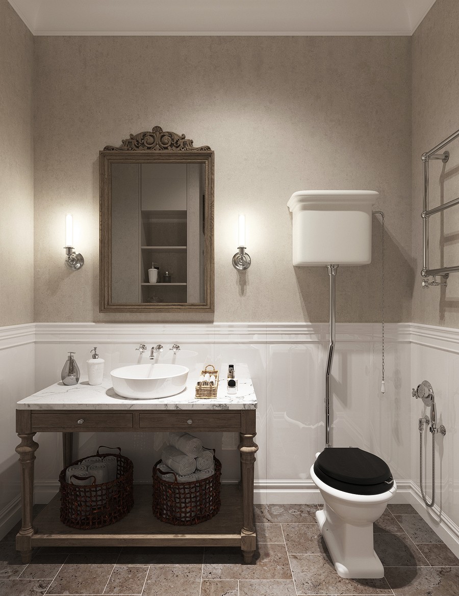 В интерьере ванной комнаты из этого проекта мы объединили разные фактуры, материалы и стили, добавили изящные и в тоже функциональные элементы - в результате получился очень запоминающийся и красивый интерьер!
