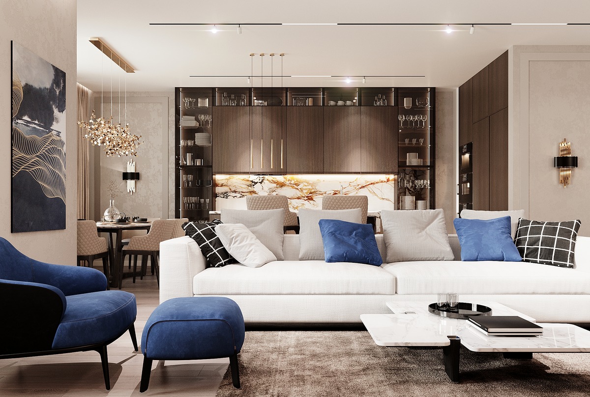 Реализация: разработка дизайн-проекта, несколько вариантов визуализации, ремонтно-отделочные работы, перепланировка, комплектация -