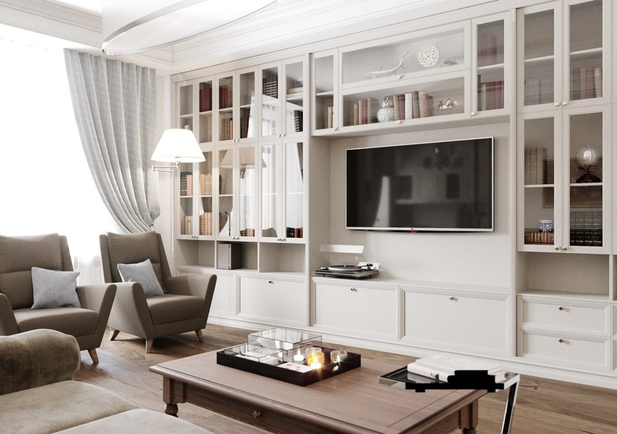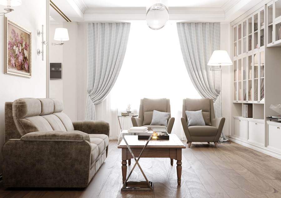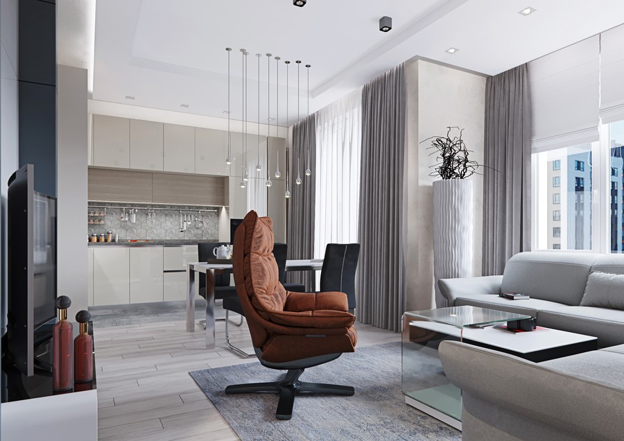 Квартира для супружеской пары, выдержанная в спокойных оттенках.