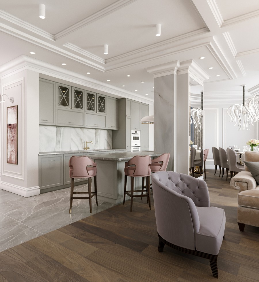 Проект этой квартиры отличается от других, и великолепным образом показывает многогранность дизайнера: на смену классики пришли современность, эклектика и фьюжн. В проекте используются абсолютно разные материалы и мебель, благодаря которым интерьер стал более современным, выразительным и эмоциональный