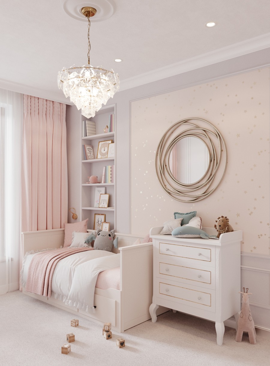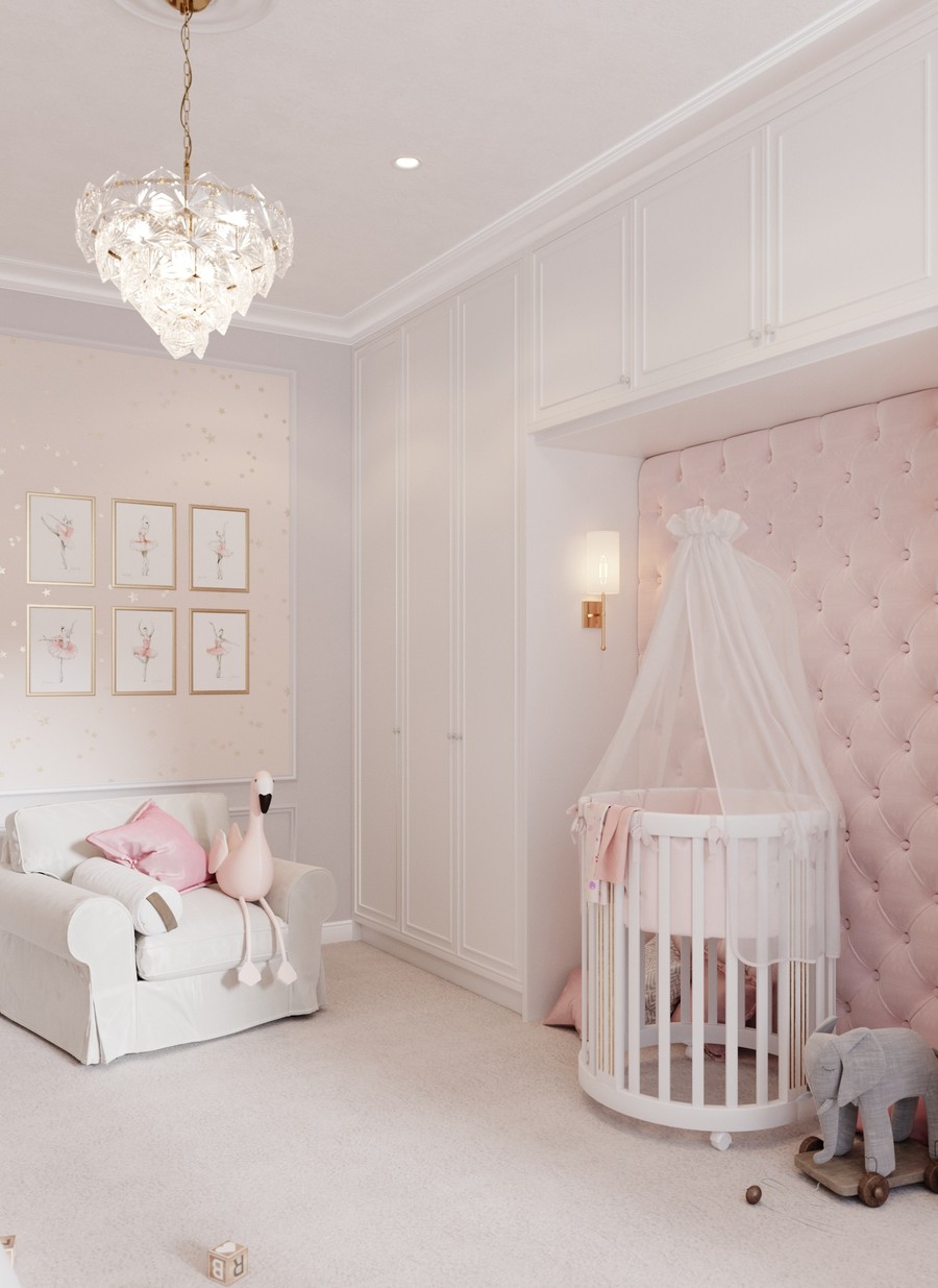 Всем известно, что в отделке комнаты новорожденного рекомендуют использовать исключительно спокойные, мягкие пастельные тона, которые не будут будоражить психику младенца. Именно поэтому в основе детской комнаты в ЖК "Крестовский de luxe" лежит нежный оттенок розового.