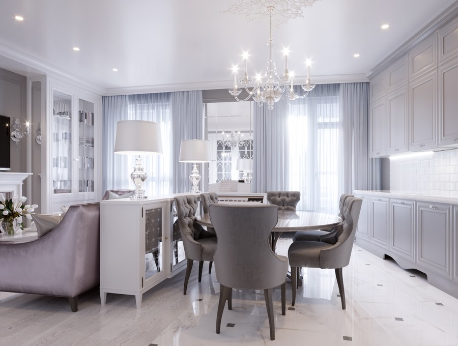 Кухня и гостиная из проекта квартиры в ЖК "Крестовский de luxe"