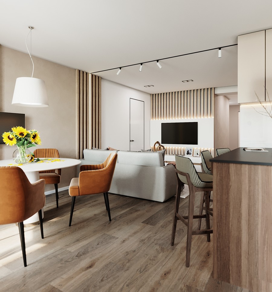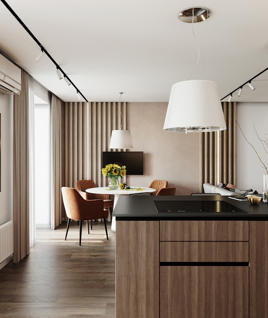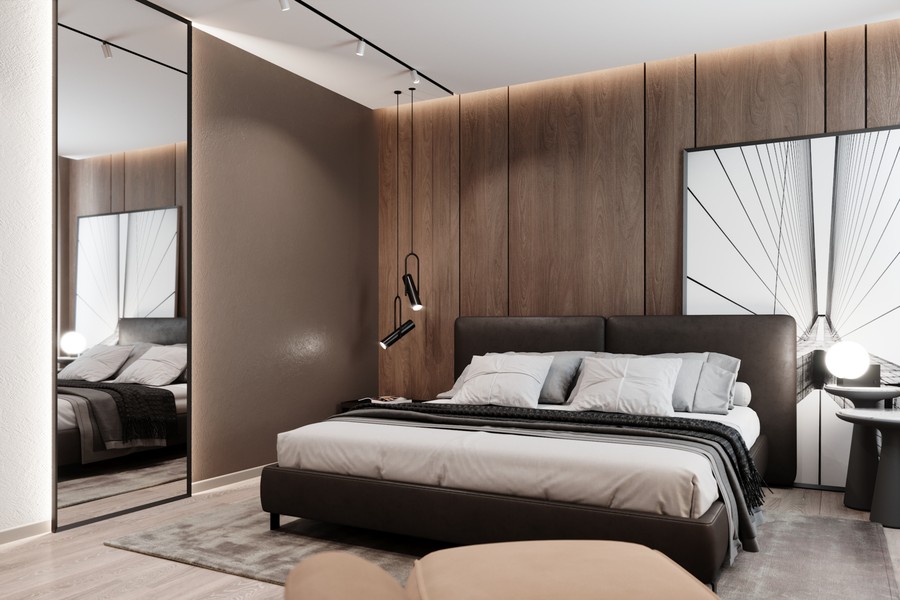 Деревянные панели или рейки создадут умиротворяющую атмосферу загородного дома. Оттенок древесины можно подобрать в цвет мебели, чтобы объединить интерьер в единое целое.
