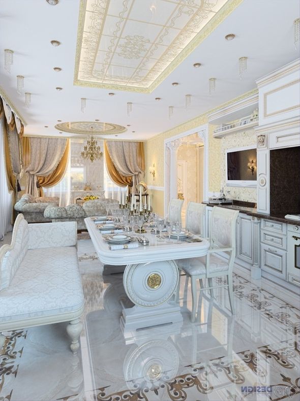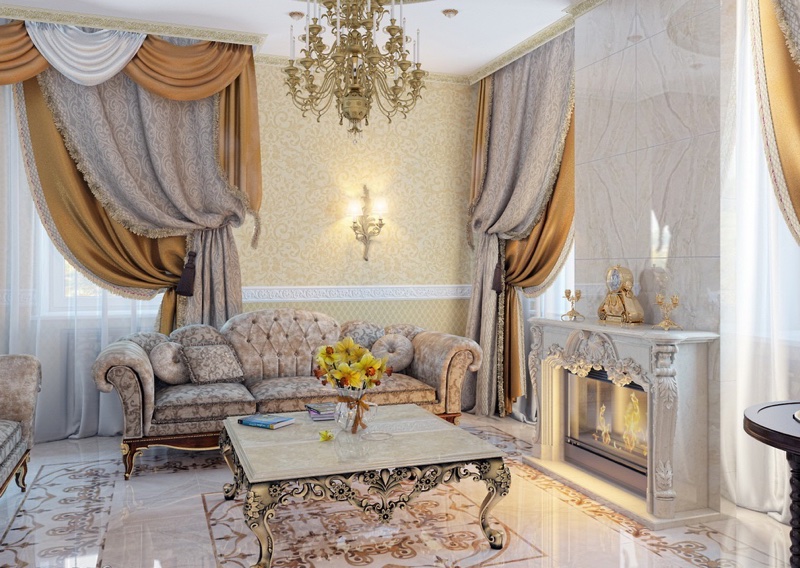 Двери в интерьере ампира обычно прямоугольные, филенчатые, как бы вытянутые вверх. Часто двери оформляют как порталы и украшают статуями: сфинксами, львами, грифонами – типичными для ампира мотивами. Окна только деревянные, пластик в таком интерьере совершенно недопустим. Украшают окна французскими шторами, карнизами в виде древка.
