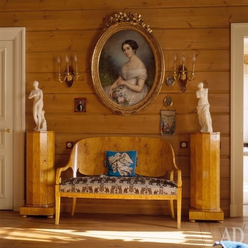 Простота, естественность и целесообразность — главные приметы русского стиля. Интерьер в русском стиле экологичен, в нем уместны только природные материалы, главный из которых — дерево. Свойственная дереву теплота привносит в дом особый природный дух и уют. Простая грубоватая мебель, печь, как центр дома, изделия народных промыслов являются основой оформления любой разновидности русского стиля.