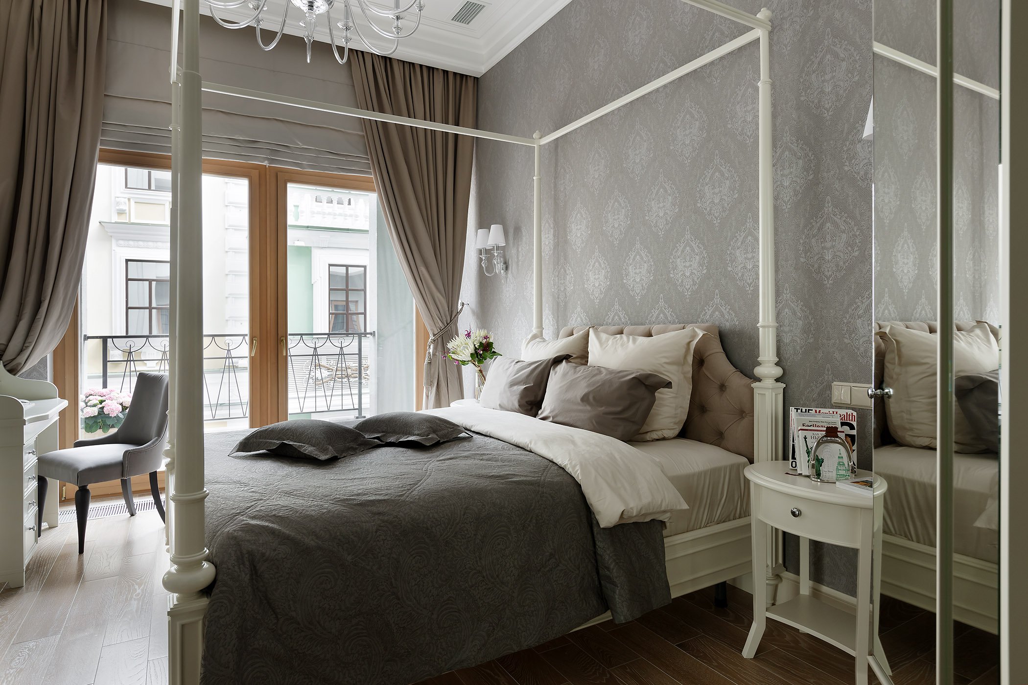Исторический фасад дома и традиции городской архитектуры повлияли на стиль интерьера — французская классика. Молдинги на стенах, светильники внесли в интерьер респектабельность, а большое количество зеркал, светлая отделка и мебель позволили зрительно увеличить площадь квартиры вдвое.