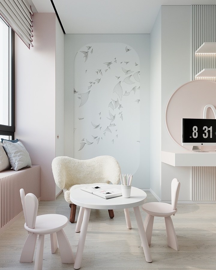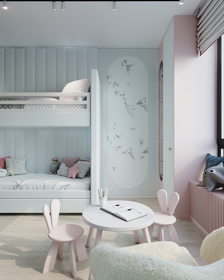 Кстати, во время реализации проекта Заказчики попросили полностью переделать детскую комнату (доп.услуга), оставив первоначальные размеры комнаты.