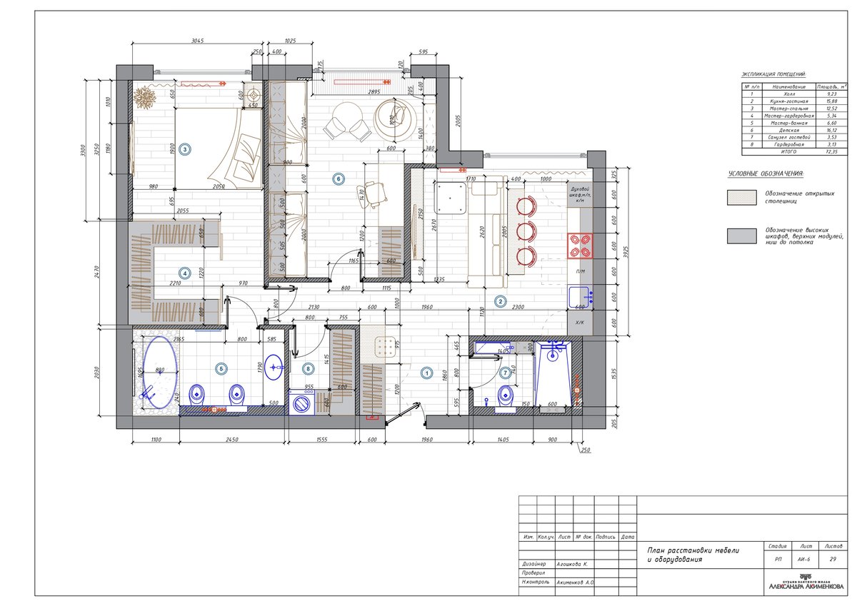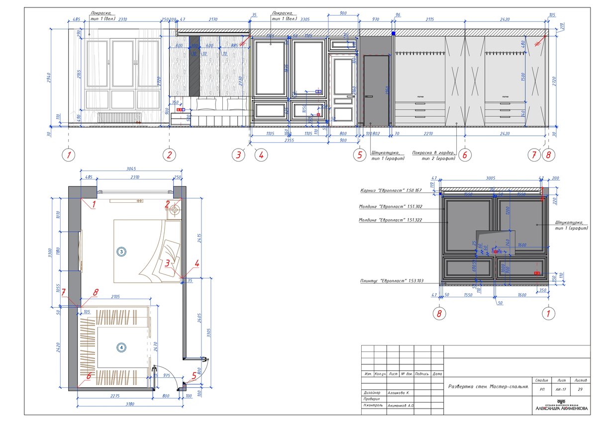Что сделано: разработан дизайн-проекта квартиры с новой планировкой и большой мастер-спальней