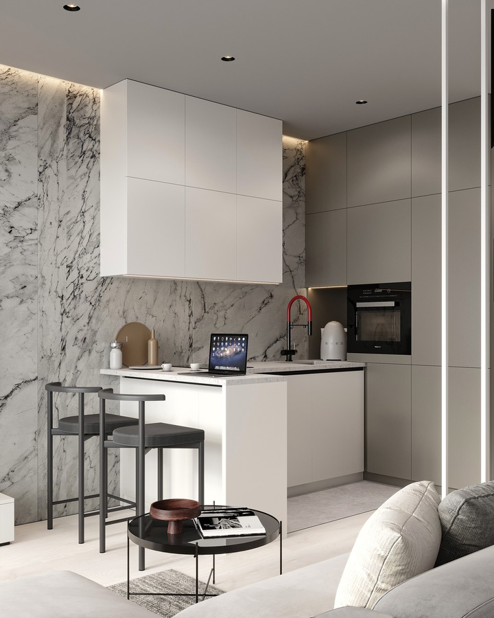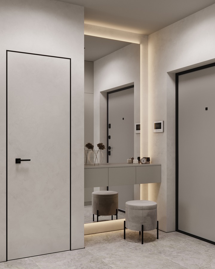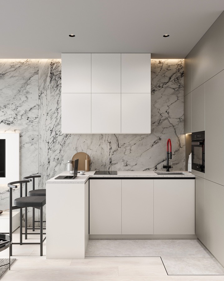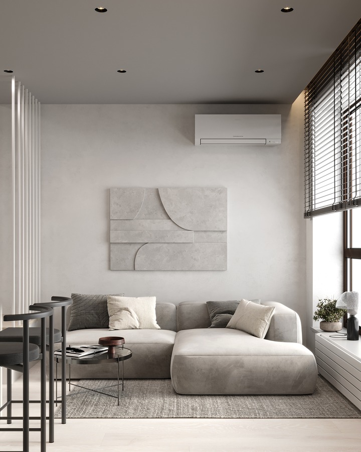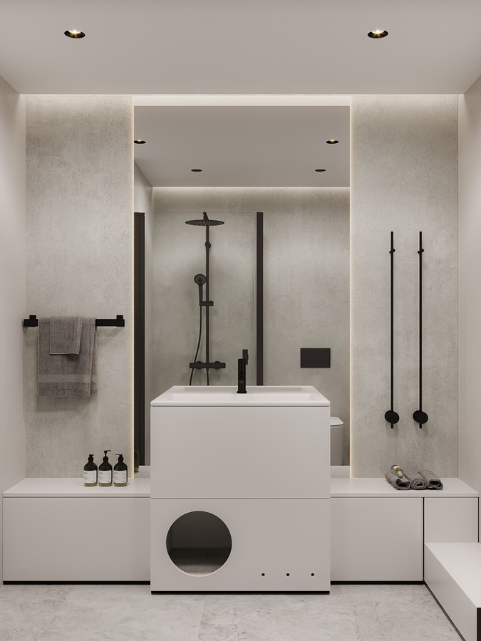 Дизайн двухуровневой квартиры разработан в стиле современного минимализма с использованием белых и светло-серых оттенков. Перед дизайнером нашей студии стояла задача создать функциональное и гармоничное пространство. На первом этаже объединены гостиная и кухня: лаконичная мебель, встроенная техника и панорамные окна подчеркивают простор и свет. Второй этаж отведен под уютную спальню с мягким текстилем и практичным гардеробом. Проект сочетает легкость, эстетику и комфорт, идеально подходя для современной жизни.