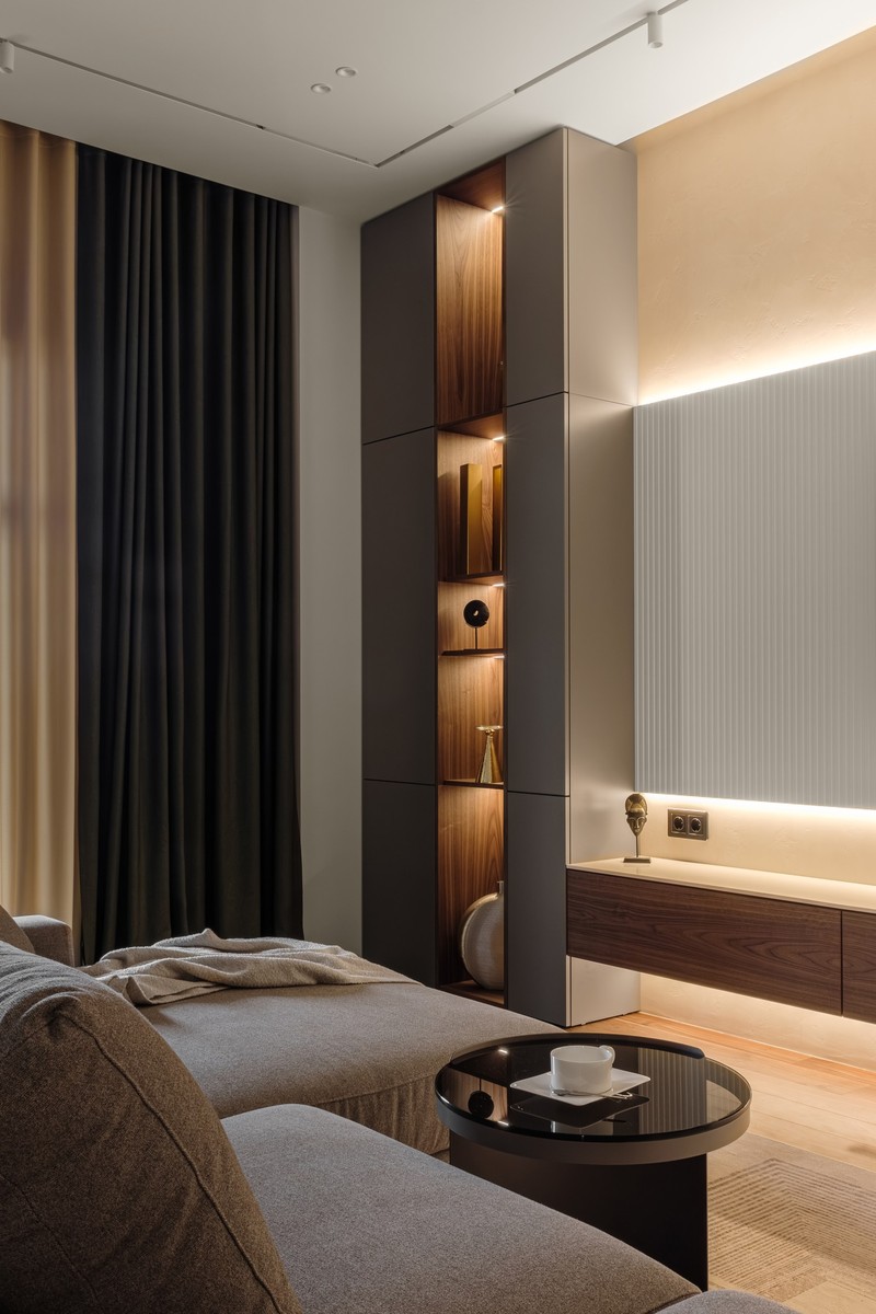 Что сделано: разработка дизайн-проекта, ремонтно-отделочные работы, несколько вариантов визуализации, перепланировка, комплектация и наполнение интерьера, авторский и технадзор - студия Александра Акименкова.