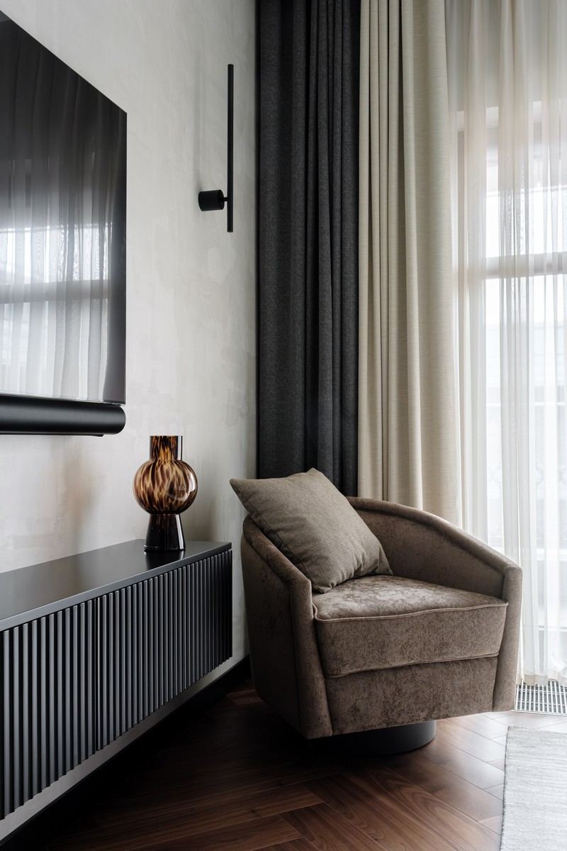 Что сделано: разработка дизайн-проекта, несколько вариантов визуализации, ремонтно-отделочные работы, перепланировка, комплектация - студия Александра Акименкова.