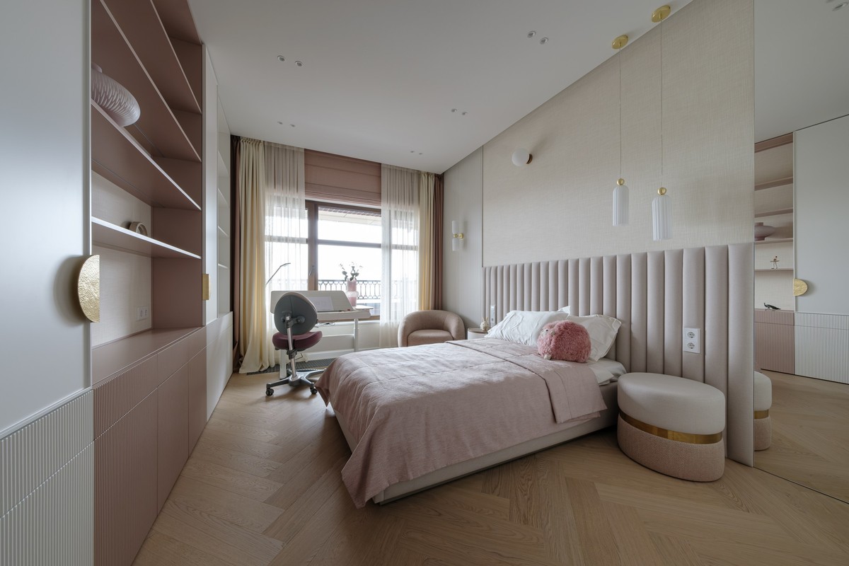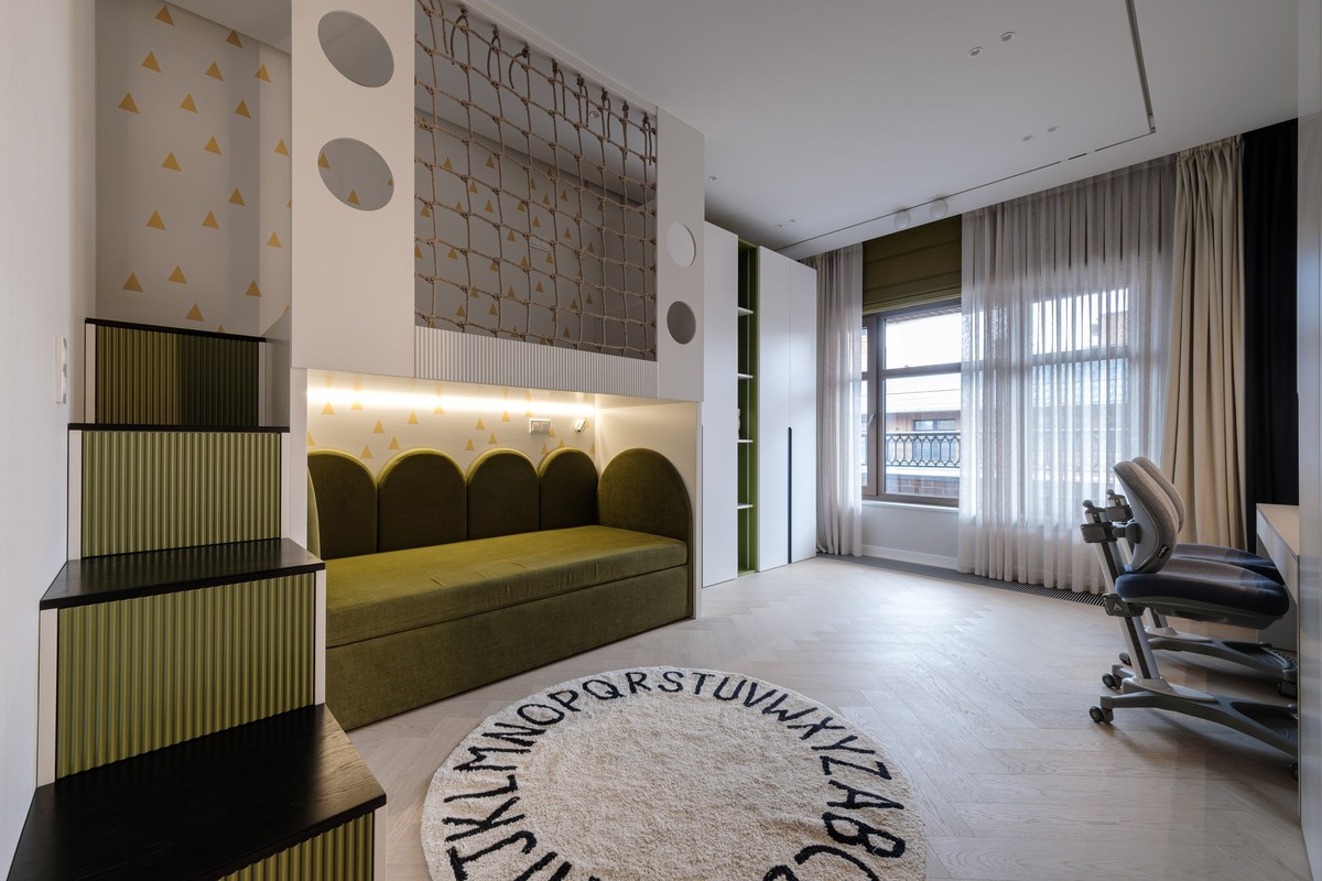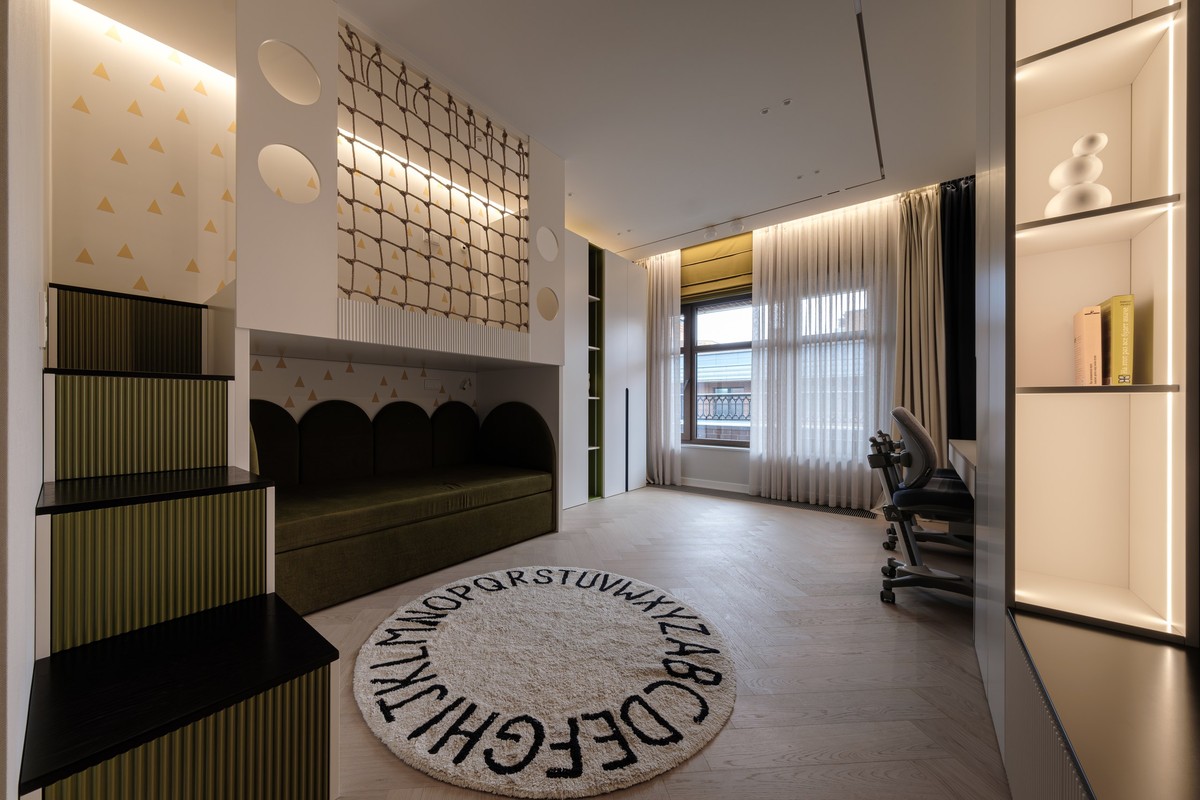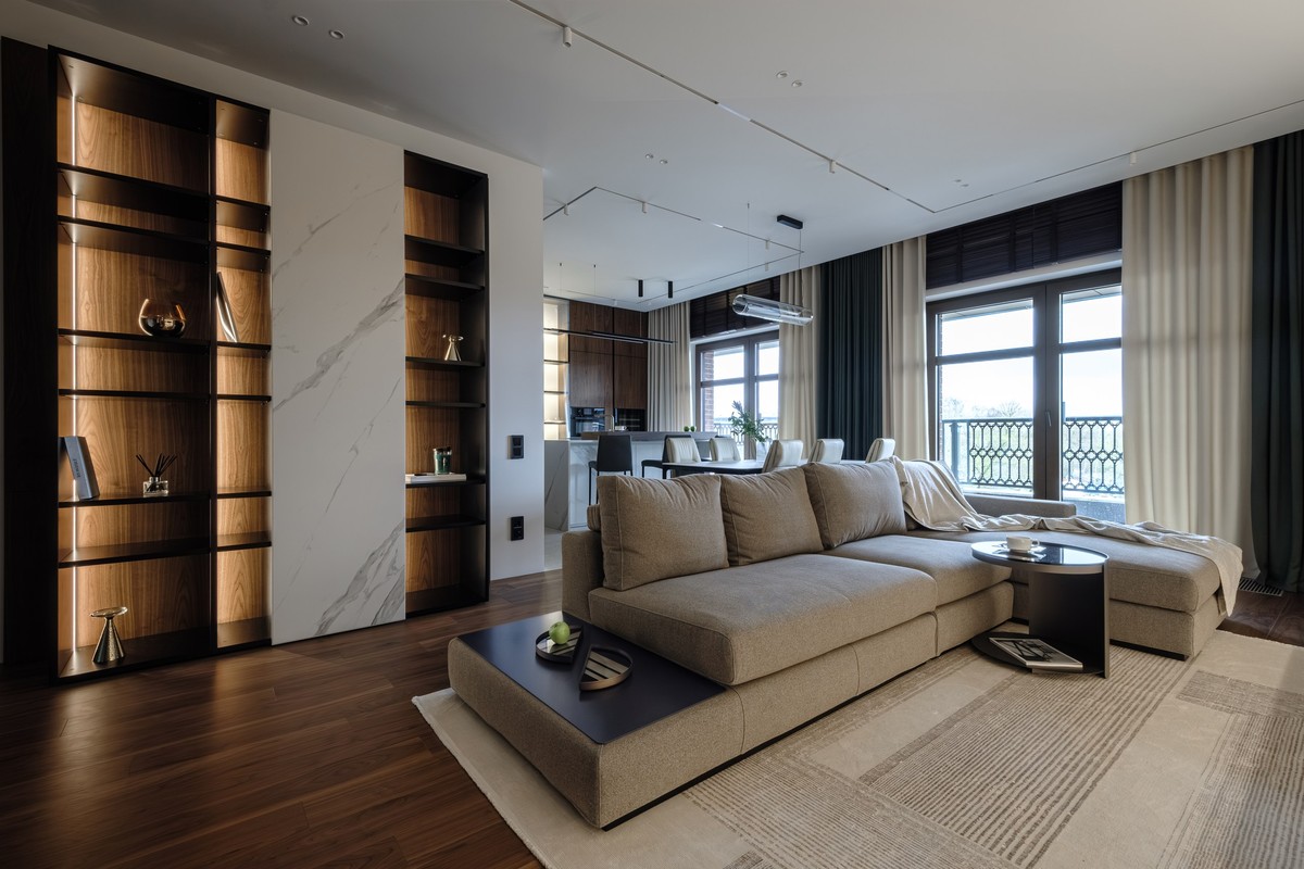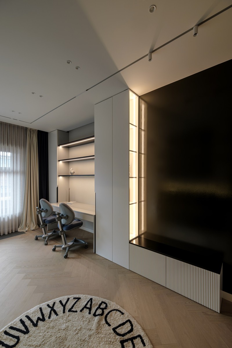 Литвин Алиса - дизайнер нашей студии - создала современный интерьер большой квартиры площадью практически 200 "квадратов". В ходе работы была создана новая планировка с просторными и продуманными помещениями. Например, была создана большая гостиная-кухня, полноценная мастер-спальня и 3 детских комнаты.
