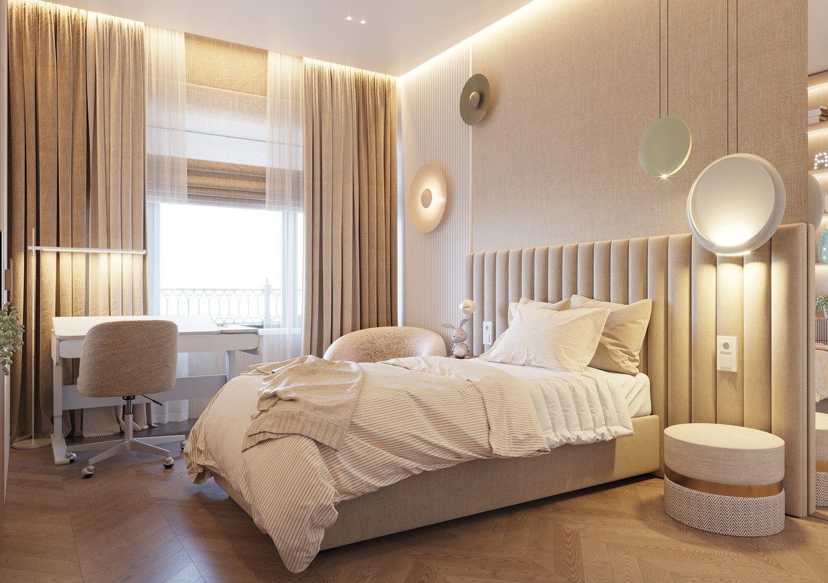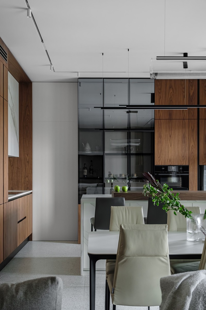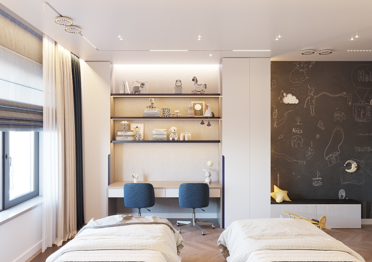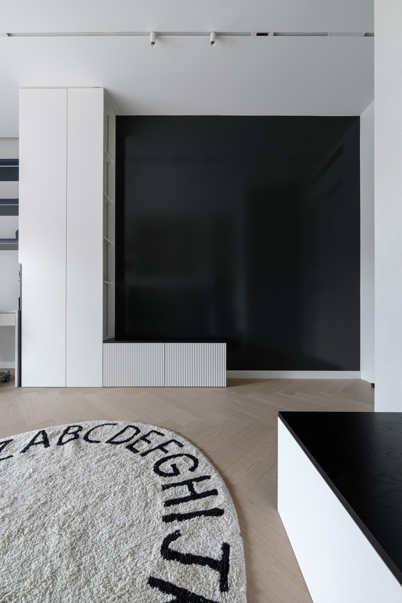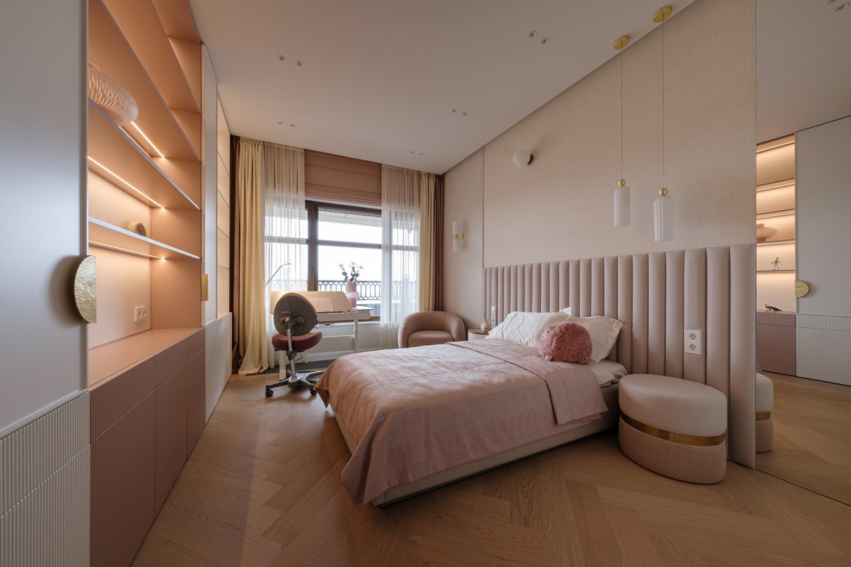Литвин Алиса - дизайнер нашей студии - создала современный интерьер большой квартиры площадью практически 200 "квадратов". В ходе работы была создана новая планировка с просторными и продуманными помещениями. Например, была создана большая гостиная-кухня, полноценная мастер-спальня и 3 детских комнаты.