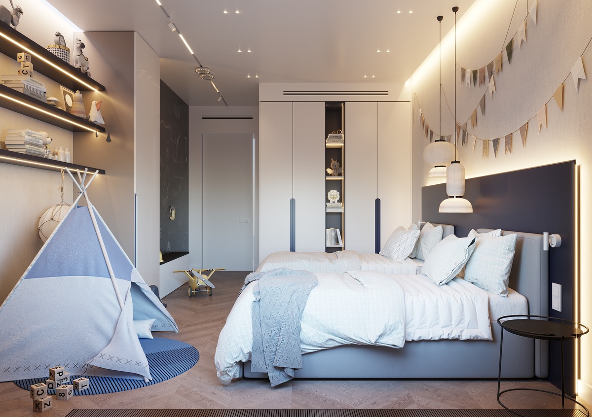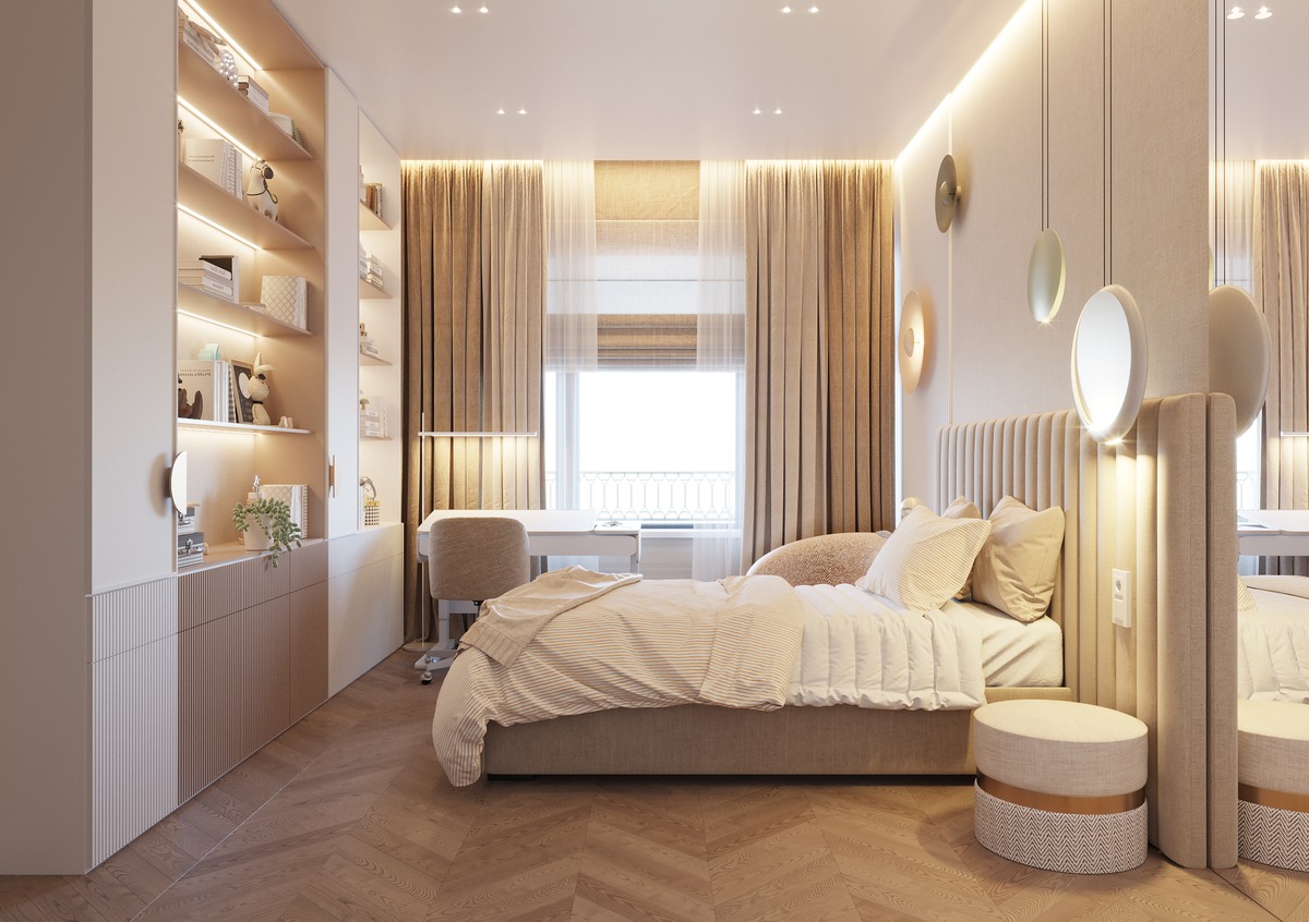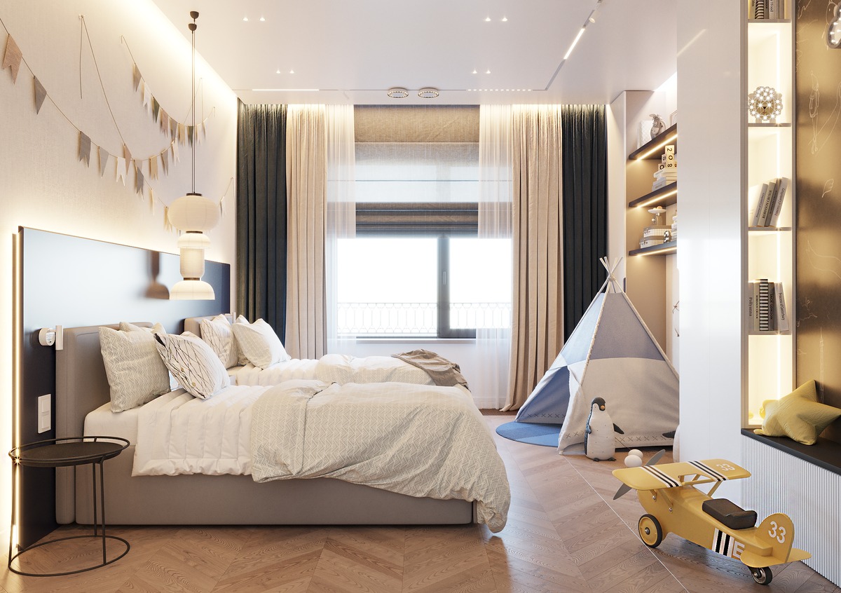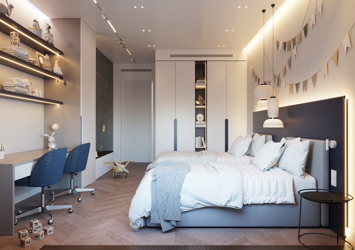Литвин Алиса - дизайнер нашей студии - создала современный интерьер большой квартиры площадью практически 200 "квадратов". В ходе работы была создана новая планировка с просторными и продуманными помещениями. Например, была создана большая гостиная-кухня, полноценная мастер-спальня и 3 детских комнаты.