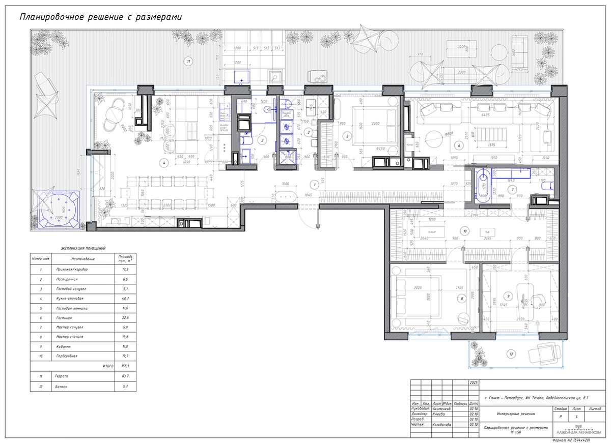 Дизайн квартиры в ЖК «Tesoro», 163м². Ремонт "под ключ" — Студия Александра Акименкова