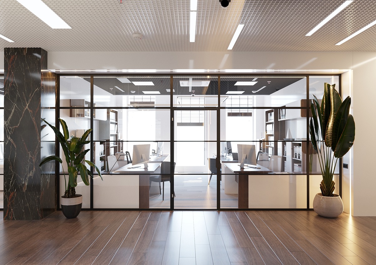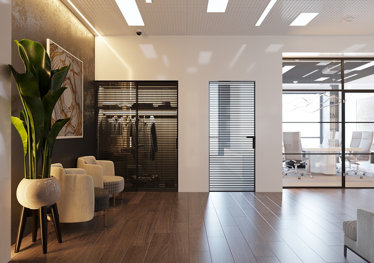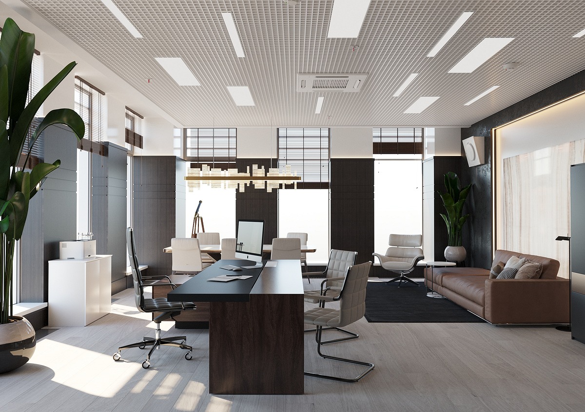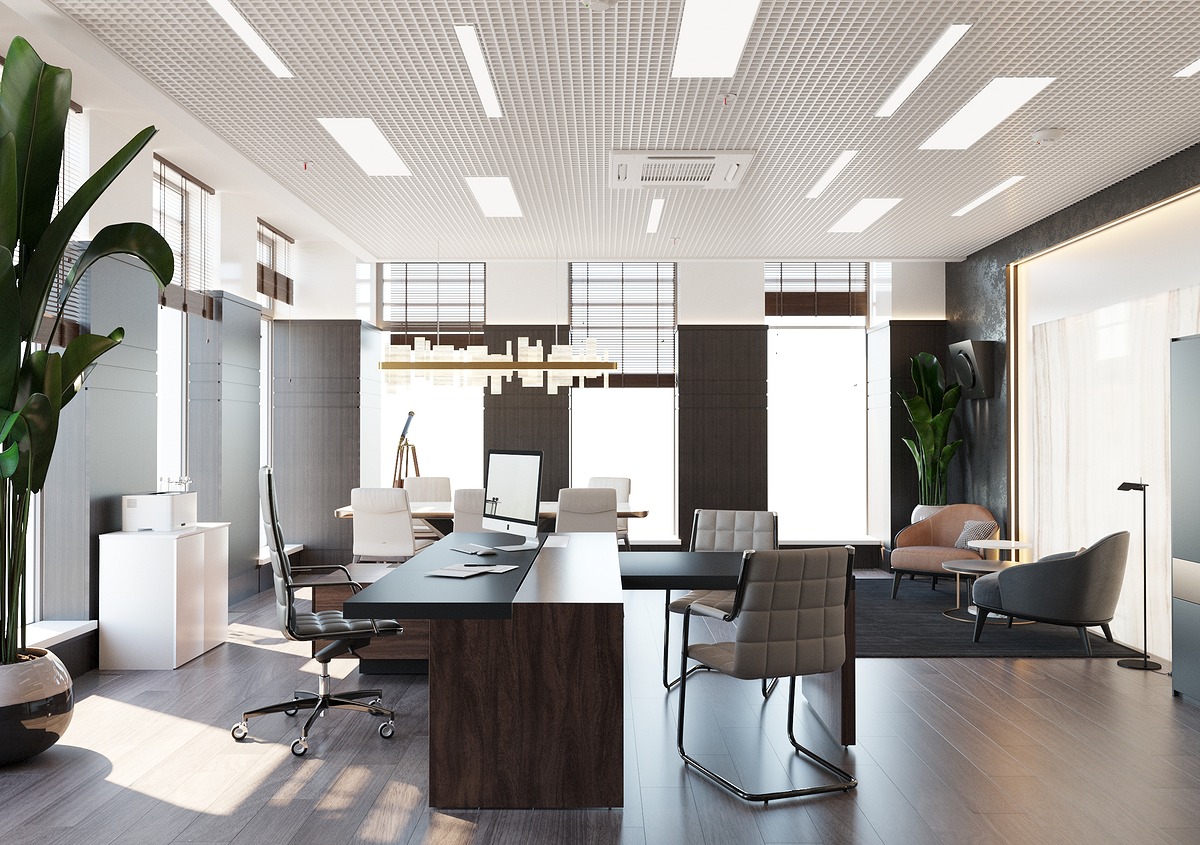 Особенности: офис крупной финансовой компании, панорамные окна, дизайн премиум-класса, большой кабинет директора