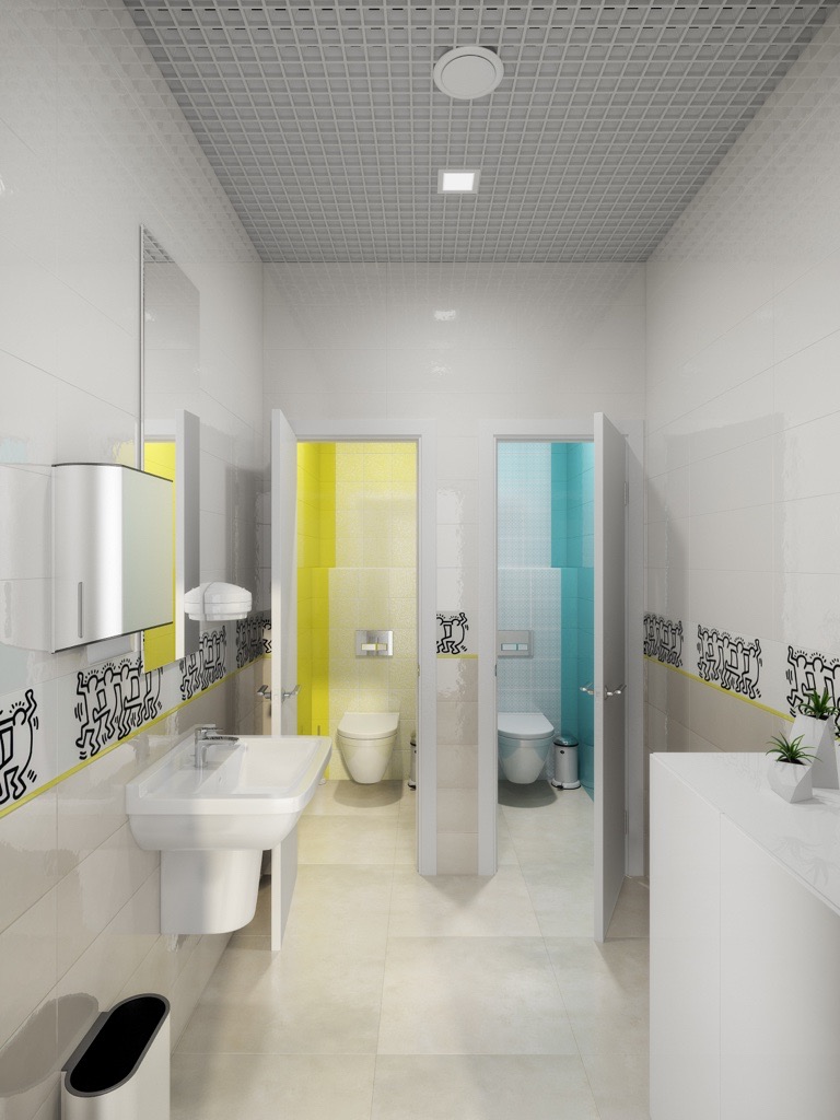 Отдельно стоит отметить кухню и санузел в офисе. Их яркий дизайн все так же минималистичен, но выглядит более сочным благодаря цветной мебели и отделке. Таким образом, современный дизайн офиса в БЦ «Ковенский 5» предусматривает все для удобства и качественной, производительной работы сотрудников, а также определяет статус компании и подчеркивает ее индивидуальность.